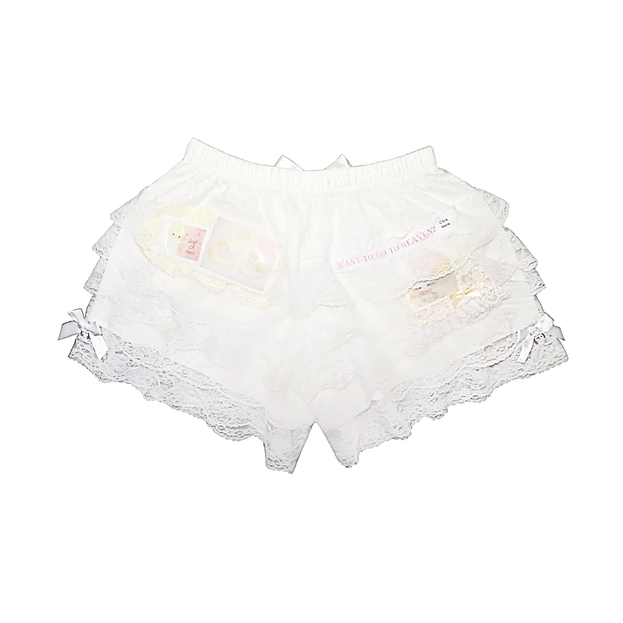 White lace bloomers, featuring precious moments graphics double sided